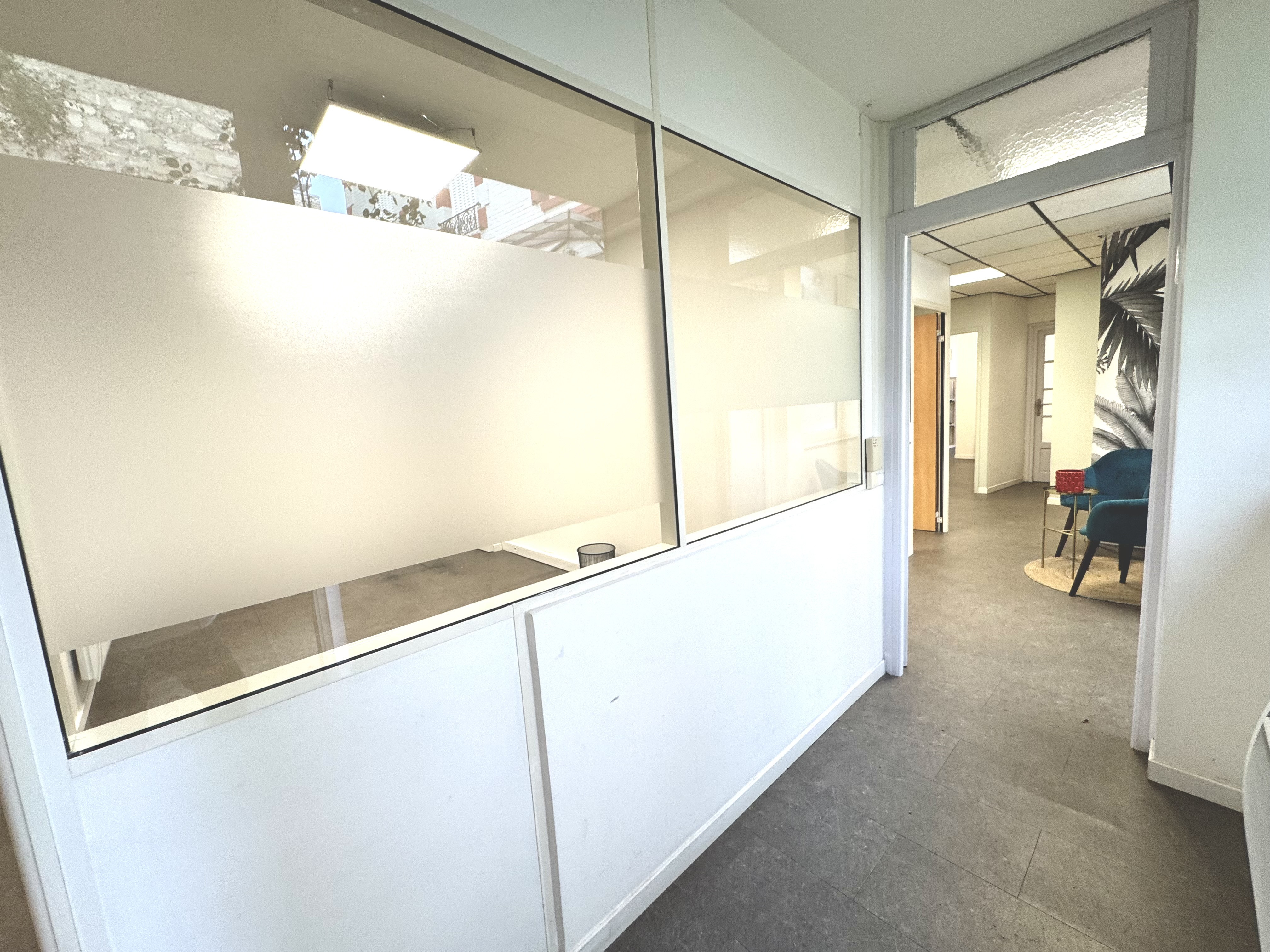 Caractéristiques principales : 4 bureaux individuels, 1 piece de stockage, 2 sanitaires, Coin cuisine et piece à achives, Un petit exterieur privatif-
